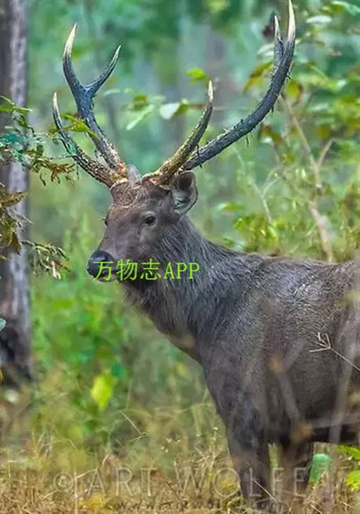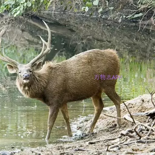 水鹿是热带、亚热带地区体型最大的鹿类,身长140-260厘米,尾长20-30厘米,肩高120-140厘米,体重100-200千克,最大的可达300多千克。雄鹿长着粗长的三叉角,最长者可达 1米。毛色呈浅棕色或黑褐色,雌鹿略带红色。颈上有深褐色鬃毛。体毛一般为暗栗棕色,臂部无白色斑,颌下、腹部、四肢内侧、尾巴底下为黄白色。