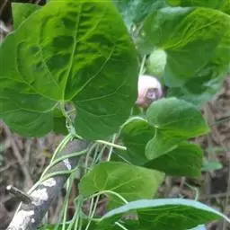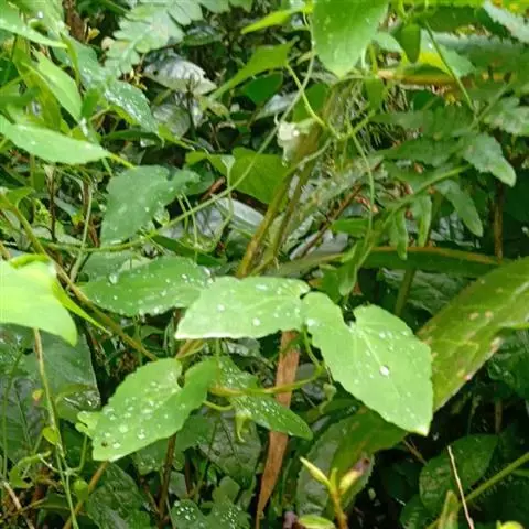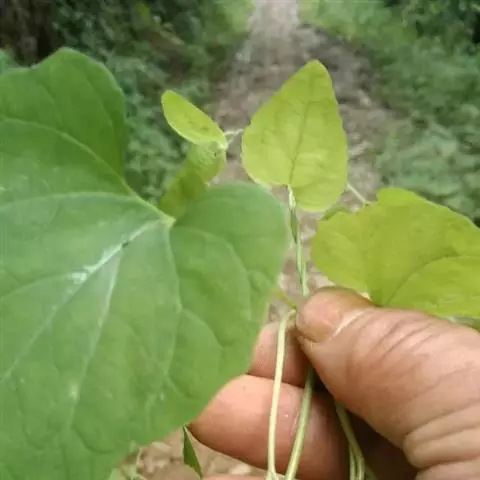 茎缠绕长约1-2米,直径2-4毫米,有多数分枝,侧枝15-50厘米,小枝1-5厘米,具叶,不育或先端着花,黄绿色或黄白色,无毛。叶在主茎及侧枝上的互生,在小枝上的近于对生,叶柄长0.5-2.5厘米,有疏短刺毛,叶片卵形或狭卵形,长1-6.5厘米,宽0.8-5厘米,端钝或微尖,基部近于心形,边缘具波状钝锯齿,分枝上叶片渐趋狭窄,叶基圆形或楔形,上面绿色,下面灰绿色,两面疏或密地被贴伏的长硬毛或柔毛,少为无毛。