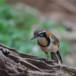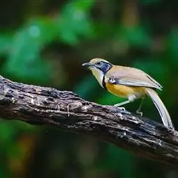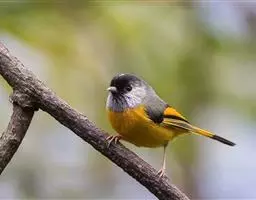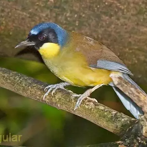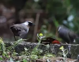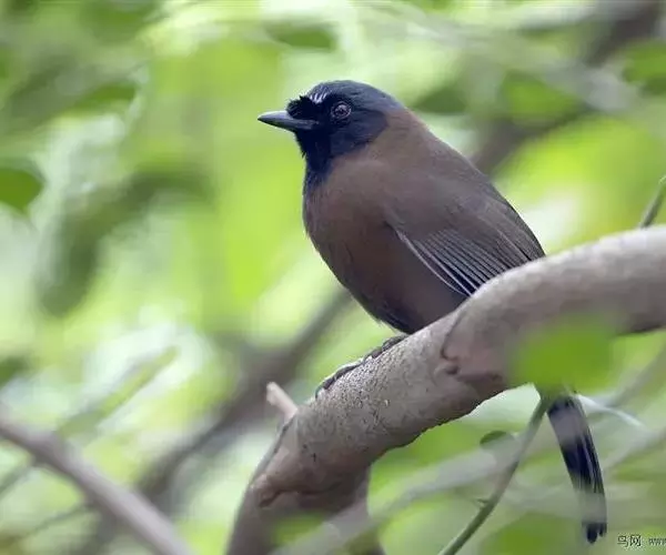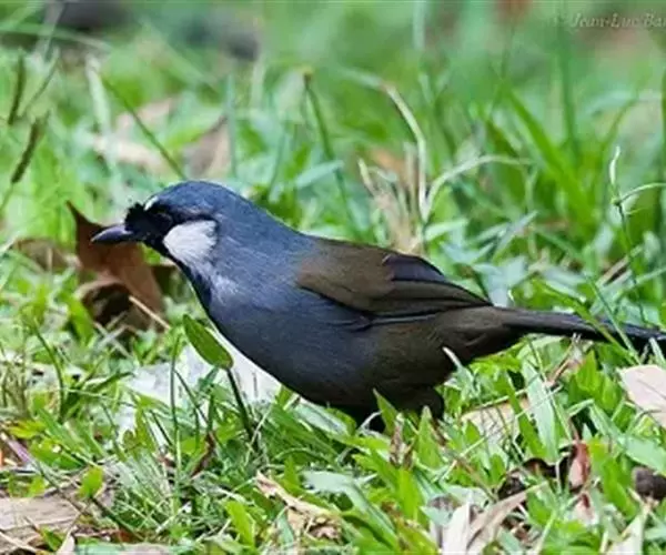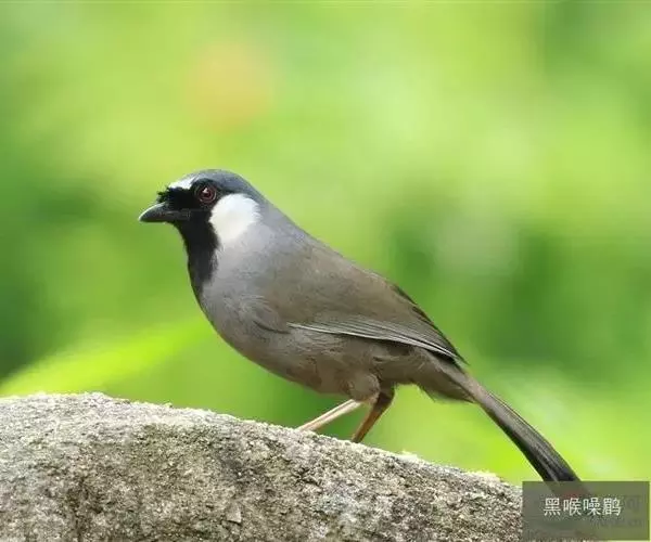 黑喉噪鹛(学名:Garrulax chinensis):共有5个亚种,体长23-29厘米,属中型鸟类。额基、眼先、眼周以及颏和喉黑色,额基黑色上面有一白斑,头顶至后颈灰蓝色,其余上下体羽多为橄榄灰沾绿至棕褐色。