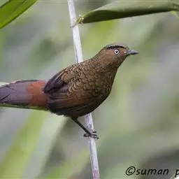 蓝翅噪鹛:噪鹛科、彩翼噪鹛属动物。中型鸟类,体长22-25厘米。上体棕橄榄褐色密被黑色鳞状斑,…
