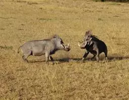 非洲疣猪:也称普通疣猪,体重在50-75千克之间,因眼部下方具疣而得名,在挖土取食时,…