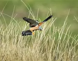 灰背隼(学名:Falco columbarius)属于隼形目、隼科,是小型猛禽。尾羽上具有宽阔的黑色亚端斑和较窄的白色端斑。后颈为蓝灰色,有一个棕褐色的领圈,成年雄性背部呈现蓝色,并杂有黑斑,是其独有的特点。栖息于开阔的低山丘陵、山脚平原、森林平原、海岸和森林苔原地带,特别是林缘、林中空地、山岩和有稀疏树木的开阔地方。主要以昆虫和鼠类等小型动物为食。通常营巢于树上或悬崖岩石上,偶尔也在地上。每窝通常产卵3-4枚,偶尔多至5-6枚,有时也有多至7枚和少至2枚的。中国国家二级保护动物。