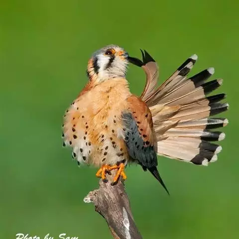 燕隼:是隼科、隼属的鸟类。体长约36厘米,体重140-340克。体形比猎隼、游隼等都小,为小型猛禽,…