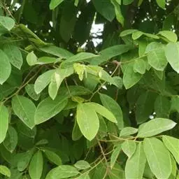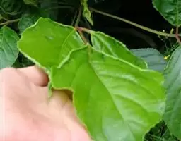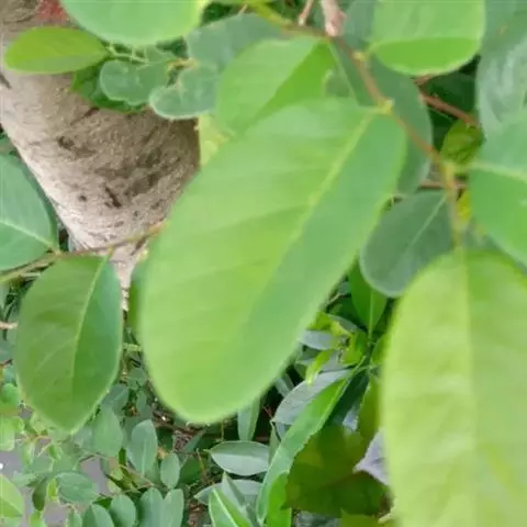 叶片纸质,长圆形、长椭圆形或倒卵状长圆形,稀近圆形,长3-9厘米,宽1.5-4厘米,顶端锐尖至钝,基部宽楔形至近圆,叶面粗涩,叶背浅绿色;侧脉每边9 12条,与支脉在叶面明显,在叶背凸起;叶柄长3-5毫米;托叶线状披针形,长约7毫米,顶端刚毛状渐尖,常早落。
