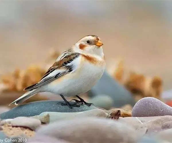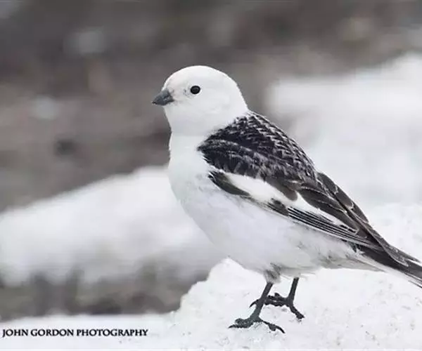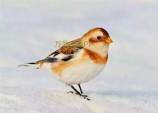 雪鹀(学名:Plectrophenax nivalis):体重32-45克,体长145-185毫米,属小型鸣禽,是一种体形矮圆的黑白色鹀。繁殖期雄鸟特征明显,白色的头、下体及翼斑与其余的黑色体羽成对比。繁殖期雌鸟对比不强烈,头顶、脸颊及颈背具近灰色纵纹,胸具橙褐色纵纹。第一冬的鸟黑色较少,且散有橙褐色,尤其在头顶及胸上。幼鸟的头及胸灰色。虹膜色深;嘴成鸟黑色,幼鸟及第一冬鸟偏黄;脚黑色。