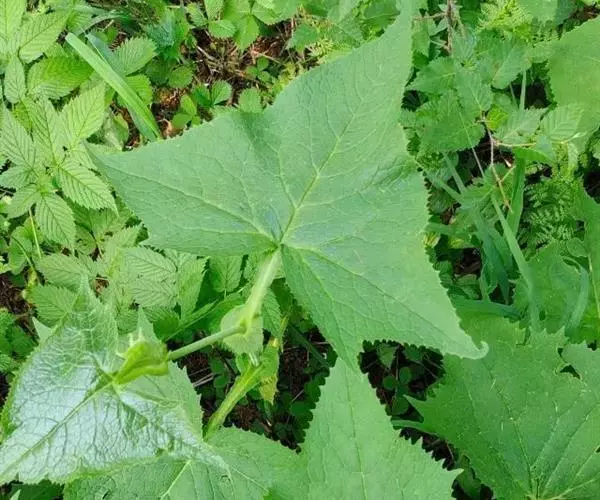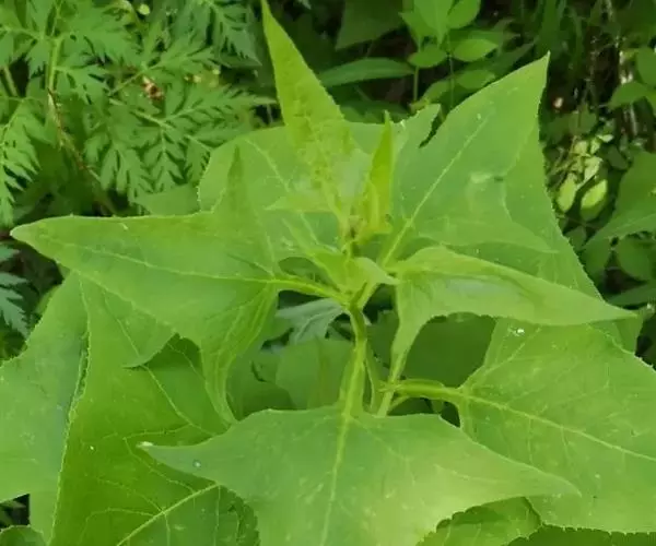 多年生草本。高40一150cm。茎直立,较粗壮,具细棱,上部常分枝,并密生被腺状短柔毛。叶下部叶花期枯萎,中部叶三角状戟形,长10–18cm,宽13–19cm,先端渐 山尖子 尖,基部截形或近心形,在叶柄处下延戊翼,叶柄长4一5cm,边缘具不整齐的尖齿,上面绿色,疏被短毛,下面淡绿色,密被柔毛:上部叶渐小,三角形或矩圆状菱形。头状花序多数,下垂,于茎顶排列戍狭金字塔形,总苞筒状,长9–12mm,宽约8mm,总苞片8,披针形,花两性皆为管状,6一19个。瘦果黄褐色,长约7mm,冠毛,白色(图98)。