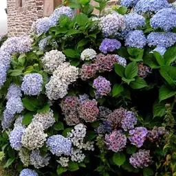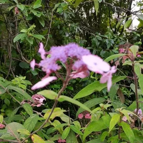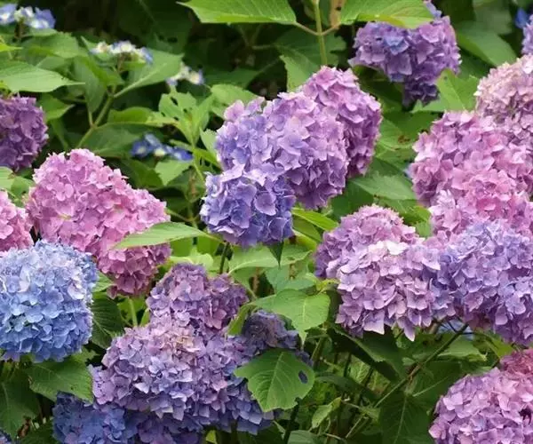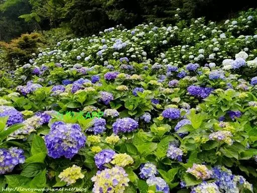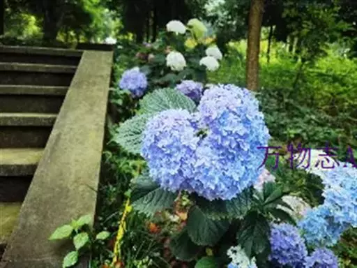 绣球又名草绣球,6月-7月开花。花初开白色,渐转粉红或蓝色,大球形,系由不孕性花组成。众花怒放,如同雪花压树,妩媚动人。它枝叶密展,根肉质,适应性强,既能地栽于家庭院落、天井一角,也宜盆植为美化阳台和窗口增添色彩。