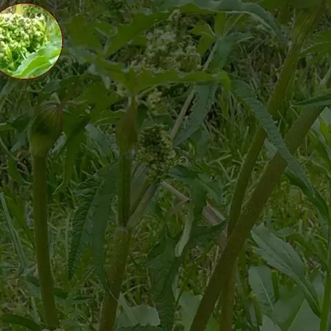 该变种与原变种的主要区别在于,其花序只有少数不育花,多数为孕性花,且花序顶端平,不呈近球状或头状。花期7月。
