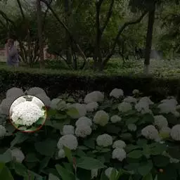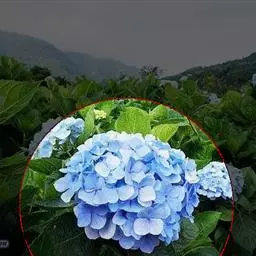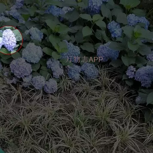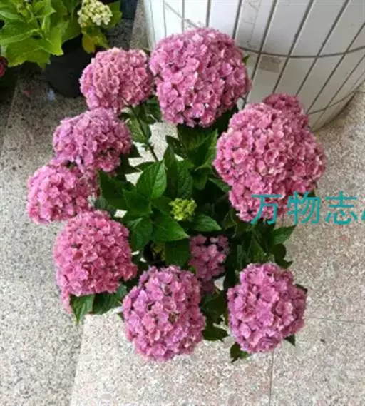 绣球(学名:Hydrangea macrophylla (Thunb.) Ser. ) : 为虎耳草科绣球属植物。灌木,高1-4米;茎常于基部发出多数放射枝而形成一圆形灌丛;枝圆柱形。叶纸质或近革质,倒卵形或阔椭圆形。伞房状聚伞花序近球形,直径8-20厘米,具短的总花梗,花密集,粉红色、淡蓝色或白色;花瓣长圆形,长3-3.5毫米。蒴果未成熟,长陀螺状;种子未熟。花期6-8月。