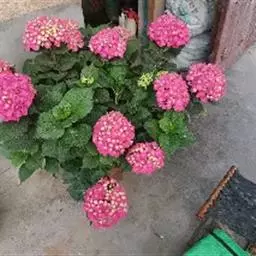 盆栽绣球常用15-20厘米盆。盆栽植株在春季萌芽后注意充分浇水,保证叶片不凋萎。6-7月花期,肥水要充足,每半月施肥1次或用"卉友"21-7-7酸肥。盛夏光照过强时,适当遮荫,可延长观花期。花后摘除花茎,促使产生新枝。花色受土壤酸碱度影响,酸性土花呈蓝色,碱性土花为红色。每年春季换盆一次。适当修剪,保持株形优美。