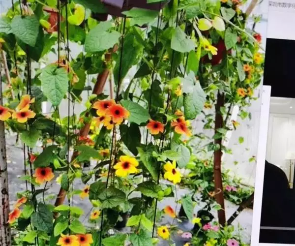 垂直绿化在阳台、露台、花架等小环境布置中,可用翼叶山牵牛进行垂直绿化。当年播种,当年就能达到很好的观赏效果。在布置中,可利用花色的差异进行搭配,营造轻松活泼的感觉。