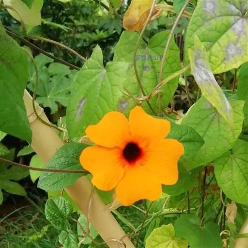 翼叶山牵牛(学名:Thunbergia alata Bojer et Sims)是爵床科,山牵牛属缠绕草本植物。茎被倒向柔毛。叶柄具翼,叶片卵状箭头形或卵状稍戟形,先端锐尖,两面被稀疏柔毛间糙硬毛,背面稍密;脉掌状,花单生叶腋,小苞片卵形,先端急尖或渐尖,钝,萼大小齿;冠檐裂片倒卵形,冠檐黄色,喉蓝紫色;花丝无毛,子房及花柱无毛;果实被开展柔毛。