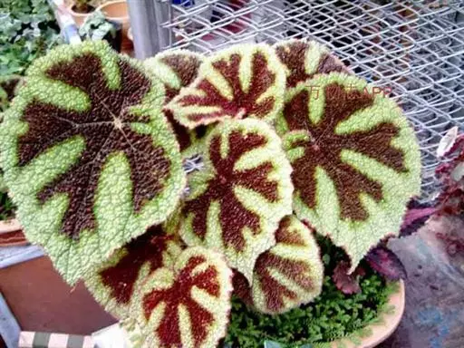 铁十字秋海棠(学名:Begonia masoniana Irmsch. )是秋海棠科秋海棠属植物,年生草本,根茎横卧,肉质;叶具长柄,通常1片,密被粗、褐色卷曲硬毛,均基生。花葶高38-54厘米,有棱,近顶端有极疏长毛;花多数,黄绿色顶生,4-5回圆锥状二歧聚伞花序;花期5-7月,果期9月开。
