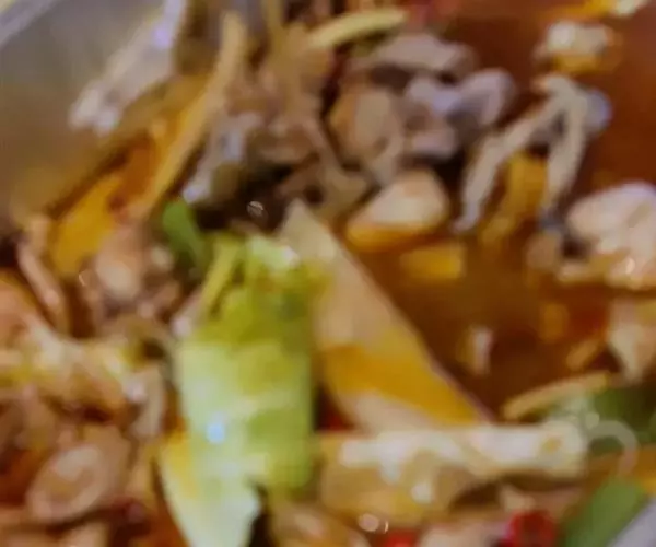 【 制法 ] 锅在旺火上加入 白汤 (要淹没原料 ) 、酱油、 葱结 、 姜块和 已放入布袋中的面香 、 桂皮、 丁香 . 色味正 确后推 入鸡腔 、 肝 、 心等 ( 上述原料事先都用 洗净 ) . 滚后弃去浮沫 , 使汤 清爽 . 然后加入黄酒 、 白 褚 . 烧至沸滚 . 压小炉火 (使 用中火 ) 加盖炯 烧 2 5分钟左右 ,焖至原料紫红色 , 先熟的先捞 出 ( 以免太 酥 ) , 置盆中放入适量原 卤浸着 . 食用时捞出切片装 盘即可。