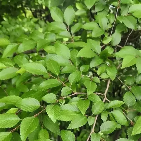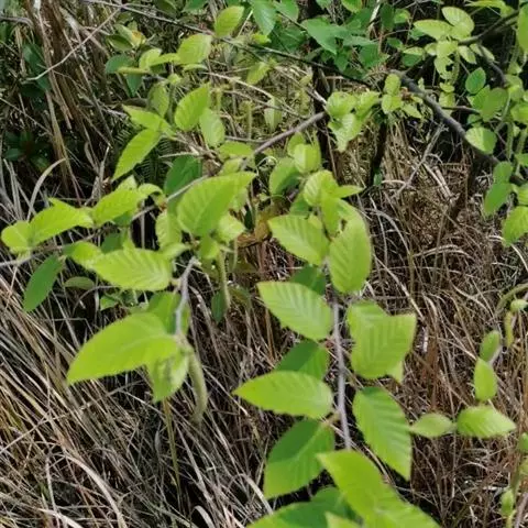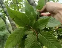 乔木,高10-20米;树皮深灰色;小枝棕褐色,密生白色皮孔,无毛。叶厚纸质,椭圆形、矩圆形、卵状披针形,长6-11厘米,宽3-5厘米,顶端渐尖、尾状渐尖至长尾状,基部圆楔形、圆形兼有微心形,有时两侧略不等,边缘具规则或不规则的重锯齿,除背面沿脉疏被长柔毛及有时脉腋间具稀少的髯毛外,均无毛,侧脉12-15对;叶柄较细长,长(10-)15-30毫米,多数无毛,偶有稀疏长柔毛或短柔毛。果序长5-15厘米,直径2.5-3厘米,下垂;序梗疏被短柔毛;序轴纤细,长1.5-4厘米,无毛;果苞长1.5-2.5(-3)厘米,内外侧基部均具裂片,近无毛;中裂片半卵状披针形至矩圆形,长1-2厘米,内侧边缘全缘,很少具疏细齿,直或微作镰形弯曲,外侧边缘具齿牙状粗齿,较少具不明显的波状齿,内侧基部的裂片卵形,长约3毫米,外侧基部的裂片与之近相等或较小而呈齿裂状。小坚果宽卵圆形,长3-4毫米,无毛,有时上部疏生小树脂腺体和细柔毛,具少数细肋。 [1-3]