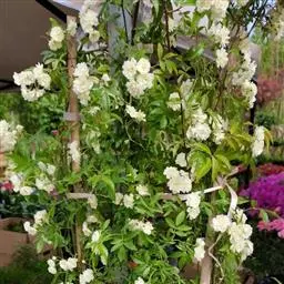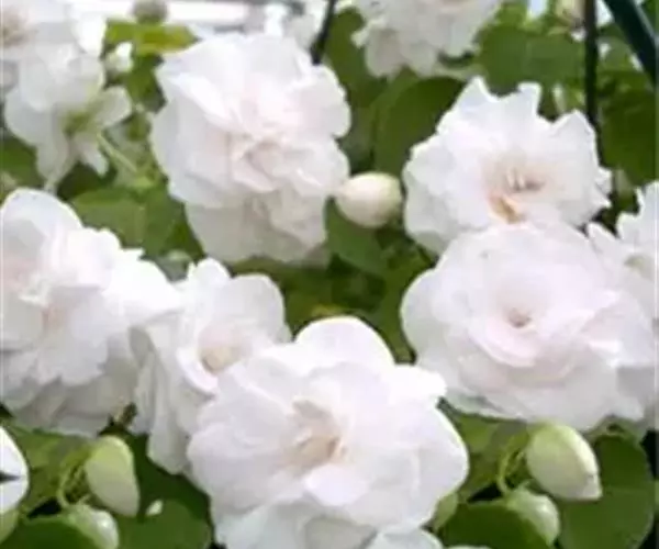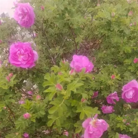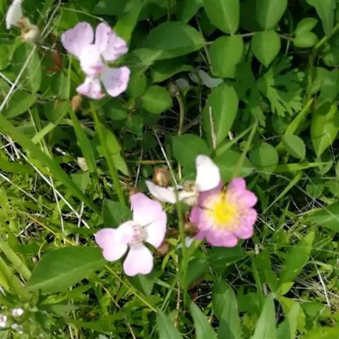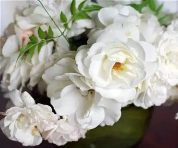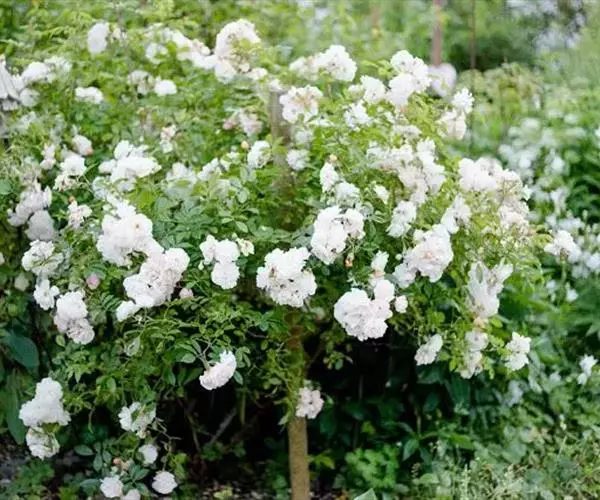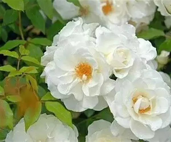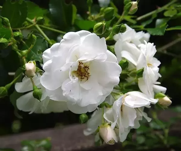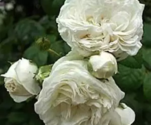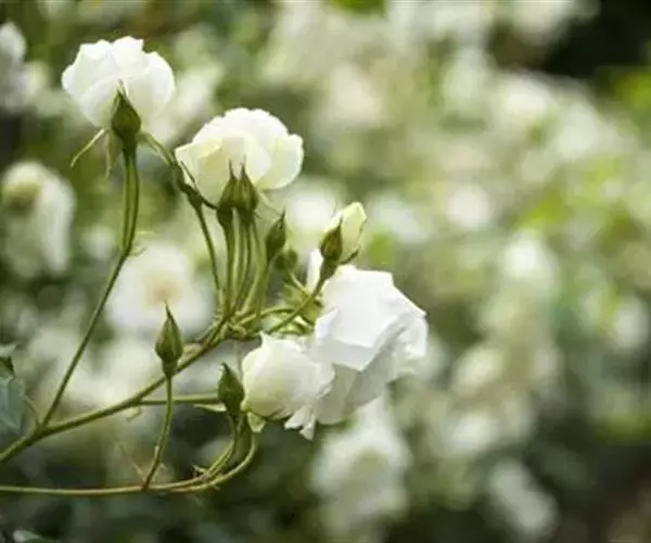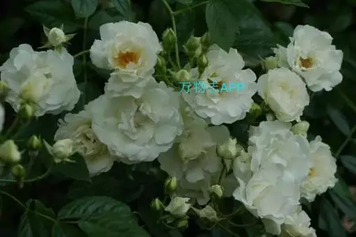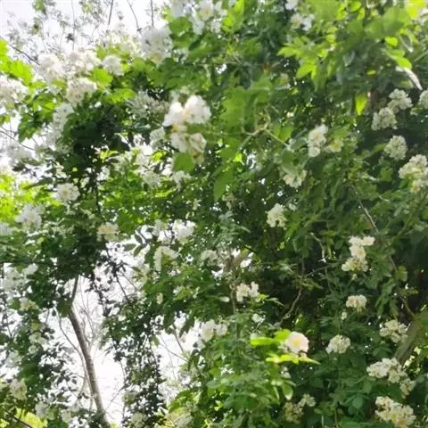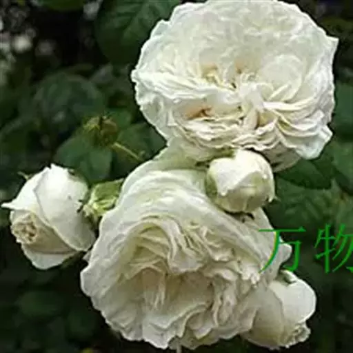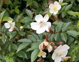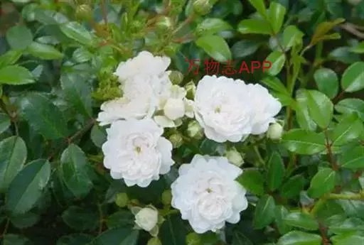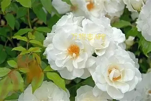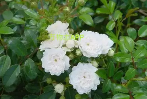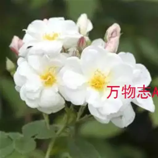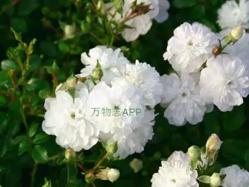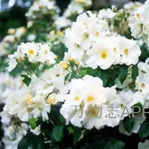 白蔷薇(学名:Rosa ×alba Linn.):直立灌木,高约2米;小枝有不等钩状皮刺,有时混有刺毛。小叶通常5,稀7,宽椭圆形或卵形,边缘有单锯齿,下面被毛,托叶宽,半边有锯齿。花排列成伞房状,直径6-8厘米;萼筒光滑,萼片卵状披针形,有羽状裂片,外被腺毛;花瓣单或重瓣,白色或粉红色,有香味。果长圆卵形。