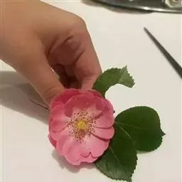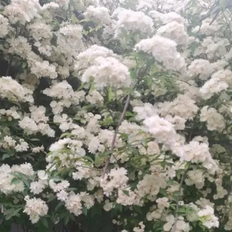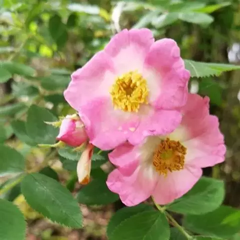 花排列成伞房状,花梗有腺毛,花直径6-8厘米;萼筒光滑,萼片卵状披针形,有羽状裂片,外被腺毛;花瓣单或重瓣,白色或粉红色,有香味。果长圆卵形,长约2厘米,鲜红色,萼片脱落。
