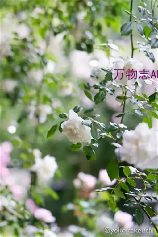 春天时,蔷薇花修长的枝干附着叶子伸展着、相拥着,一簇、又一簇自成一体,花虽不大,却铺天盖地开着,与枝干、玉叶和谐地交织着,似一首无声的诗,立体的画,任何人工凿成的雕塑无法与之媲美;在盛夏,蔷薇花花虽然没有春天那么盛,却也恰到好处地开着,准确地说是零星点缀着,给燥热的盛夏带来了几分清爽,几分恬静;在深秋,在风的吹荡下,蔷薇花将细碎的花瓣撒向人间,那粉红的、雪白的、黄淡的……点缀在绿色的、黄色的落叶上,点缀在湖面上引来无数鱼儿嬉戏,给收获季节又增添了诗情画意;在隆冬,经过寒风的侵袭、雪的洗礼,蔷薇花更显出那特有的秀美与坚强,修长的枝干更加挺拔。她身披银装,若天仙,若簇簇白云,还有她的精髓-红色的花核,零星地点缀在白色冬衣上,宛若一颗颗镶嵌的红玛瑙,楚楚动人,几分妩媚,几分娇艳。