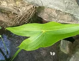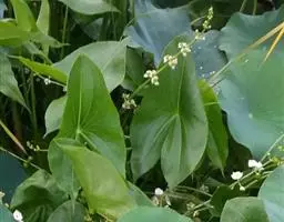 茎基部四棱形,有翅;叶腋内常生有形状大小不一的零余子;单叶互生,中部以上叶对生,叶卵状心形至心状矩圆形,顶端尾状,基部宽心形,两面无毛;有时压干后,叶边缘向内卷褶。