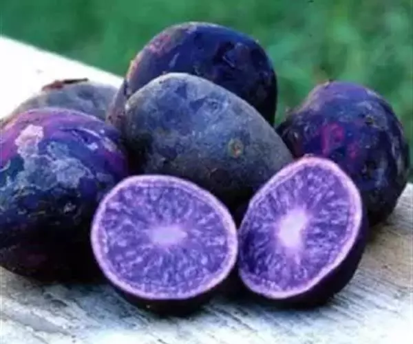 ③德国黑薯。2002年引进中国,中蔓,分枝多,薯块大小整齐,肉质细腻,香甜可口,抗病性较强,一般667平方米产量4000公斤~5000公斤,单株结薯可达10公斤以上,最大单薯重5.7公斤。除食用外,还可提取色素,是紫红薯品种中最佳品种之一。