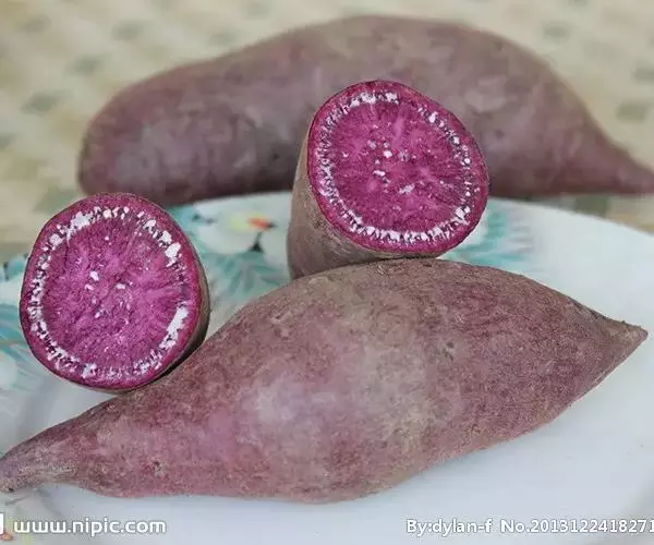 ①山川紫。该品种从日本引进,色素含量高,比普通紫红薯的花青素含量高2倍以上,除食用外还可用来提取色素。667平方米产量一般在1500公斤以上,薯形细长,整齐度差,主蔓茎长6米-7米。用该薯的嫩茎叶(尖)做菜,口感比空心菜还好。
