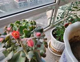 叶子表面宽厚,富肉质感且带有磨纱质感,看像石头质地;开红色小花,生于植株顶部,倒伞形密生,形状像花…