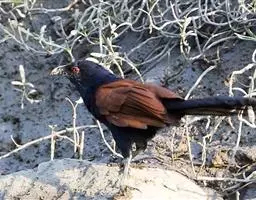 褐翅鸦鹃(学名:Centropus sinensis),是鸦鹃科、鸦鹃属的中型鸟类,体长40-52厘米,嘴粗厚、黑色,尾长而宽,凸尾,通体除两翅、肩和肩内侧为栗色外全为黑色。