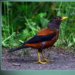 灰头鸫:中型鸟类,体长23-27厘米。整个头、颈和上胸褐灰色,两翅和尾黑色,上、下体羽栗棕色。…