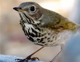 雌鸟与雄鸟大致相似,但颏、喉呈淡棕黄色具黑褐色长条形或三角形端斑,尤以两侧斑点较稠密,胸淡黄白色具三角形羽干斑。