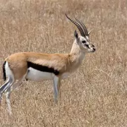 阿拉伯沙瞪羚:是偶蹄目、牛科、瞪羚属的食草动物。头尾长97厘米,身高约55-60厘米。…