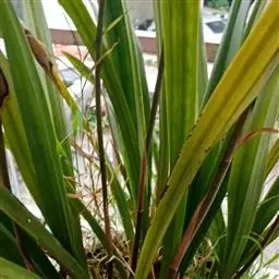 叶型有细叶、中宽叶、宽叶等;以细叶及中宽叶为多见,半垂形,叶缘有细锯齿;叶4~6片丛生,线型,长30~40cm,宽0.3~1cm左右,3~4片叶鞘紧抱有力,长势厚实,优美飘逸;尚有叶艺、奇叶、矮种等;