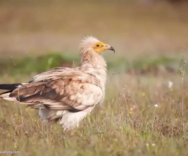白兀鹫(学名:Neophron percnopterus):也叫法老之鸡,在南亚这一物种被称为清道夫秃鹰。体长58–70厘米,翼展155–170厘米,体重1.6–2.2千克。成鸟大多是白色到浅灰色的羽毛,与黑色的翼羽和尾羽及裸露的黄色的皮肤形成鲜明对比。有披肩状鬃毛。长而窄的鸟喙基部黄色,喙尖黑色,双翼很尖,当中以第三主羽最长。尾巴短呈楔状。腿是灰白色、粉红色或浅黄色。雏鸟的羽毛比成鸟深的多,有灰棕色、棕色或黑棕色,有黑白色的斑。
