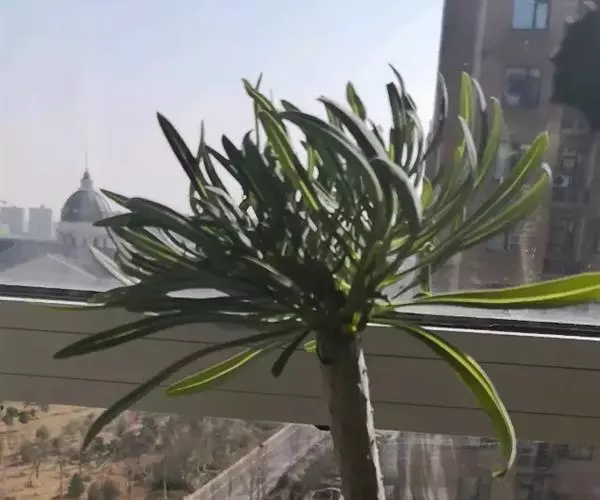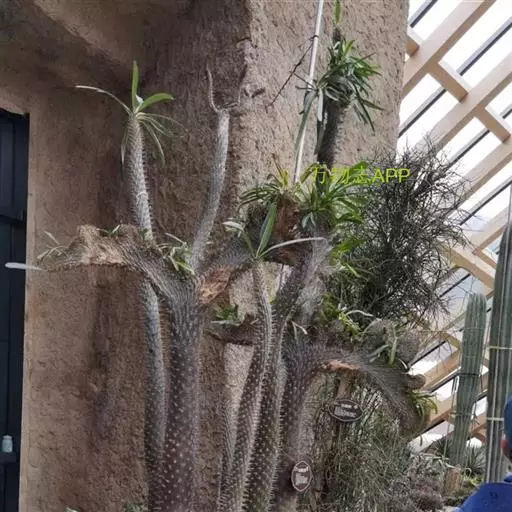 非洲霸王树原产非洲马达加斯加岛西南部的热带地区。性喜温暖、干热和阳光充足的环境,但能半萌,生长适温为20-25℃,冬季室温应不低于15℃,若夏季温度超过35℃,叶片易枯黄睨落,冬季气温低于10℃以下,易受冷害和冻害。 非洲霸王树