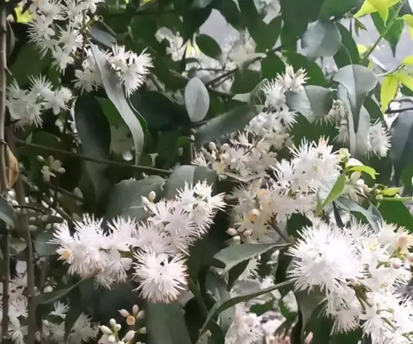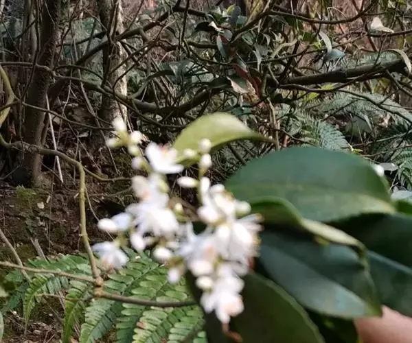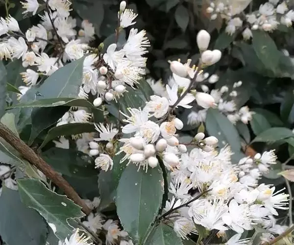 《本草纲目》:“山矾生江、淮、湖、蜀山野中,树高大者高丈许。叶似栀子,光泽坚强,略有齿,凌冬不凋。三月开花,繁白如雪,六出黄蕊,甚芬香。”