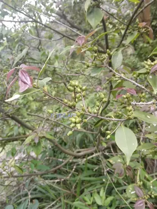 核果卵状坛形,长7-10毫米,外果皮薄而脆,顶端宿萼裂片直立,有时脱落。花期2-3月,果期6-7月。