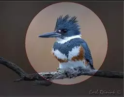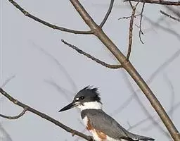 棕腹鱼狗身长38 - 42 cm ,体重305-341 g。主体羽毛蓝色。头顶的冠羽竖起一个小尖峰…