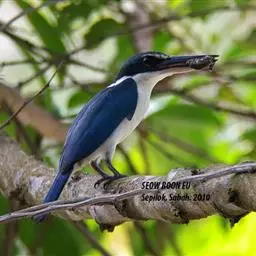 白领翡翠:有50个亚种。体长18厘米,体重35-40克。是一种蓝白色翡翠鸟。…