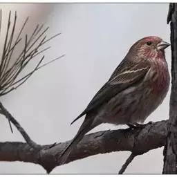 长尾朱雀:体长18厘米,体重16-26克。雄鸟额、颏和眼后为暗红色,…