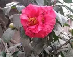 茶梅是山茶科山茶属的小乔木。分枝稀疏,嫩枝有毛;叶革质,椭圆形,上面干后深绿色,发亮,下面褐绿色,…