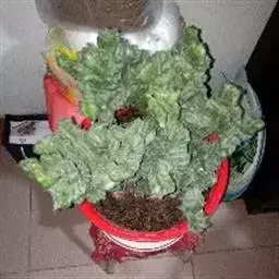 叶子表面宽厚,富肉质感且带有磨纱质感,看像石头质地;开红色小花,生于植株顶部,倒伞形密生,形状像花…