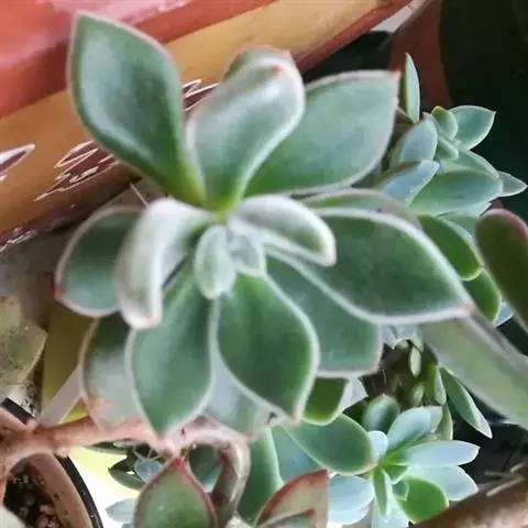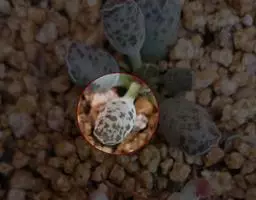 蓝黛莲是一种景天科厚叶草属植物。叶片呈略扁的圆柱形,排列成莲座状;颜色为灰绿色,…