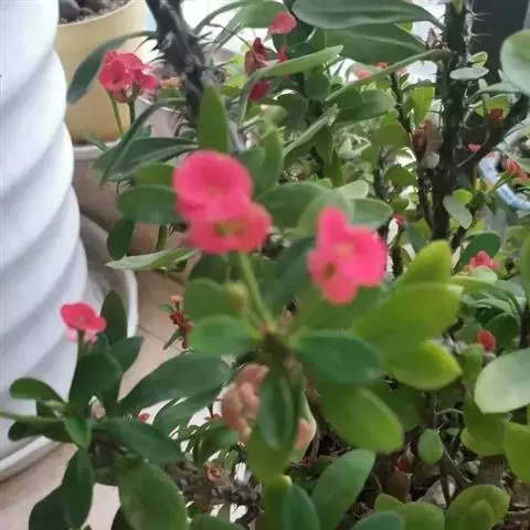 铁海棠为大戟科大戟属蔓生灌木植物;茎多分枝,具纵棱,呈旋转状;叶互生,…