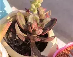 江户紫,景天科伽蓝菜属草本植物,是多年生草本花卉。花白色,但栽培中很少能见到花,常作观叶植物栽培。…
