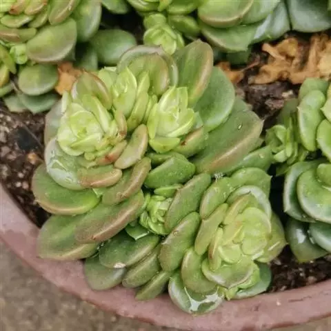 女雏是景天科石莲花属的多肉植物。特征是小巧的株形和橙粉色叶缘。极易生侧芽,…