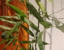 凤尾竹 Raeusch. ex Schult. ’Fernleaf’ R. A. Young)是禾本科,簕竹属孝顺竹的变种。植株较高大,杆高可达6米,竿中空,小枝稍下弯,下部挺直,绿色;竿壁稍薄;节处稍隆起,无毛;叶鞘无毛,纵肋稍隆起,背部具脊;叶耳肾形,边缘具波曲状细长繸毛;叶舌圆拱形,叶片线形,上表面无毛,下表面粉绿而密被短柔毛,小穗含小花,中间小花为两性;外稃两侧稍不对称,长圆状披针形,先端急尖;内稃线形,脊上被短纤毛,花药紫色,子房卵球形,羽毛状。成熟颖果未见。原产中国,华东、华南、西南以至台湾、香港均有栽培。凤尾竹喜温暖、湿润和阳光充足的环境,耐寒。宜土层深厚、肥沃、疏松的微酸性壤土。该种观赏价值较高,宜作庭院丛栽,也可作盆景植物。全草或根入药,味淡、微苦,性寒,有清热利湿、凉血止血、消肿解毒功效,可治痢疾、泄泻等多种病症。凤尾