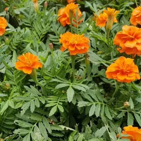 万寿菊是菊科万寿菊属一年生草本植物,别名孔雀菊、缎子花、臭菊花、西番菊、红黄草、小万寿菊、臭芙蓉、孔雀草。万寿菊茎近基部分枝。叶羽状分裂,长5-10厘米,宽4-8厘米,裂片长椭圆形或披针形,具锐齿,上部叶裂片齿端有长细芒,叶缘有少数腺体。头状花序单生,径5-8厘米,花序梗顶端棍棒状。总苞长1.8-2厘米,径1-1.5厘米,杯状,顶端具尖齿。舌状花黄或暗橙黄色,长2.9厘米,舌片倒卵形,长1.4厘米,基部成长爪,先端微弯缺。管状花花冠黄色,长约9毫米,冠檐5齿裂。瘦果线形,被微毛;冠毛有1-2长芒和2-3短而钝鳞片。花期7-9月。万寿菊中国各地均有栽培,在广东和云南南部、东南部已归化,国外原产墨西哥。万寿菊对土壤要求不严,但以肥沃疏松排水良好的土壤为好。耐移栽,种子发芽适温21-24℃,植株生长适合温度为20-29℃。喜温暖和阳光充足的环境,不