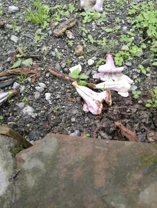 药材性状:多皱缩破碎,只有花冠,花萼则少见。花冠管状,长约4cm,棕色或暗棕色,上部膨大,色较浅,下部弯曲,色深而有皱纹。花萼钟形,革质;先端5裂,裂片三角形。完整的花,用水浸软摊开,花冠呈漏斗状,先端5裂,基部弯曲,内有紫黑色斑点。雄蕊着生于花冠上,4枚,2强,花药“个”字着生。子房上位,花柱细长。气微弱,味淡。以身干、花完整、无杂质者为佳。