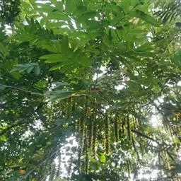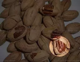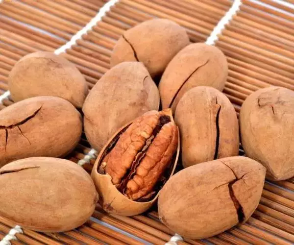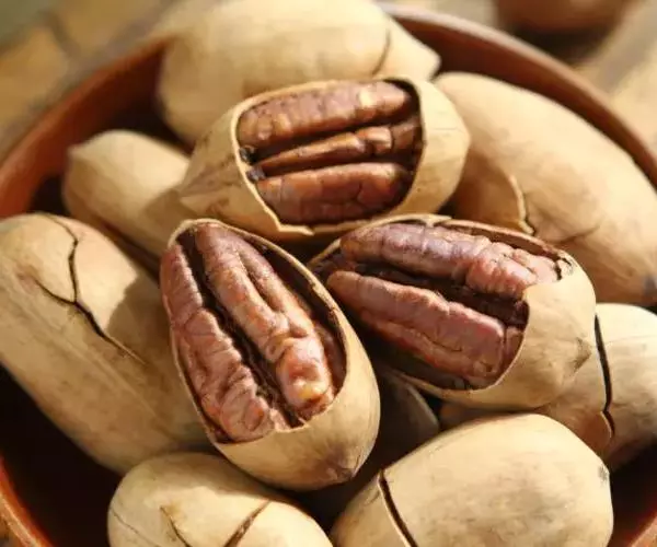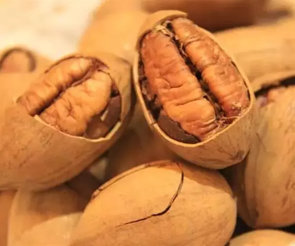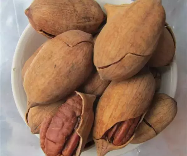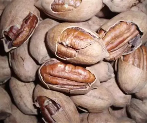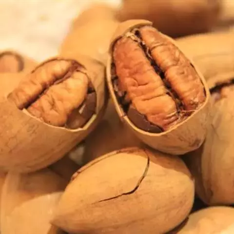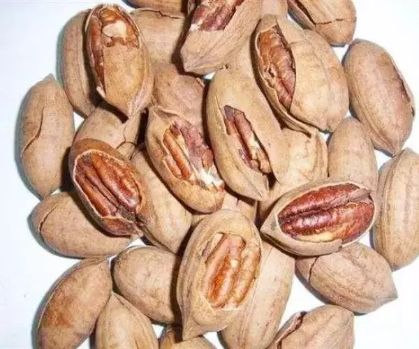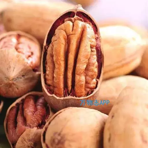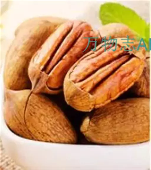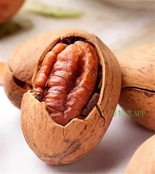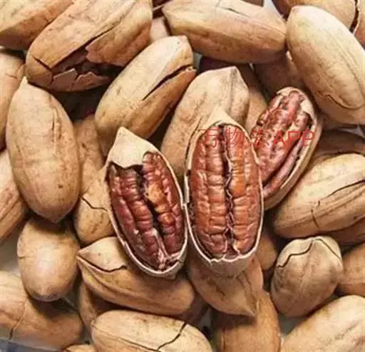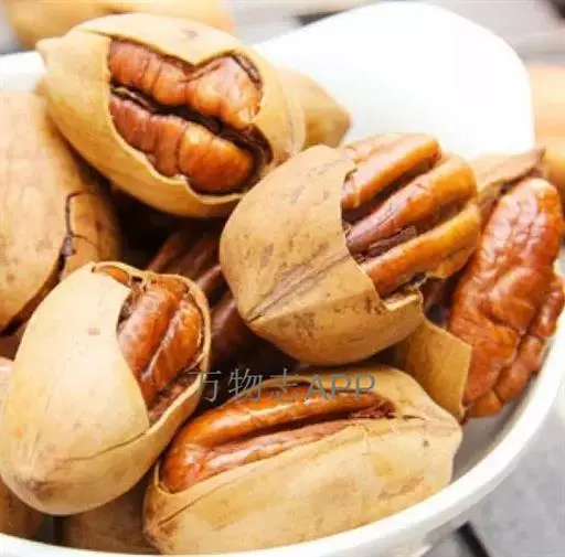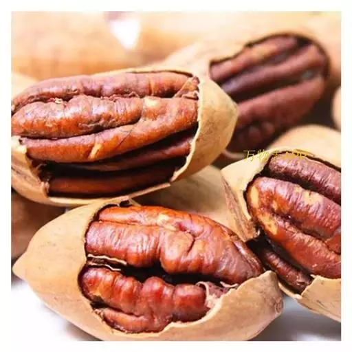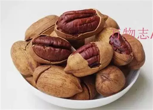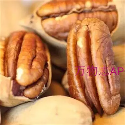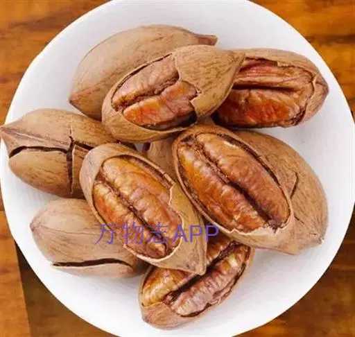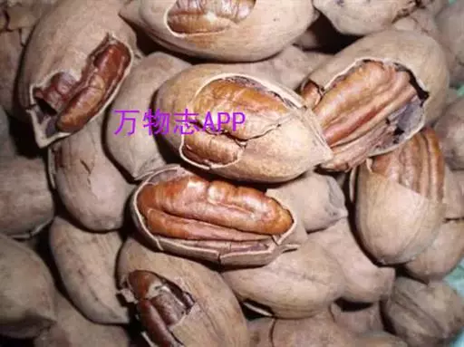 美国山核桃(Carya illinoensis Koch)属胡桃科的山核桃属,又名薄壳山核桃或长山核桃,英文名为Pecan或Hickory,原产北美大陆的美国和墨西哥北部,现已成为世界性的干果类树种之一。由于其种仁有优异的食疗保健价值。比香榧大一号,剥开是像核桃一样的果肉。壳很脆,特别好剥,就跟香榧一样脆,而肉质介于大核桃与小核桃之间。
