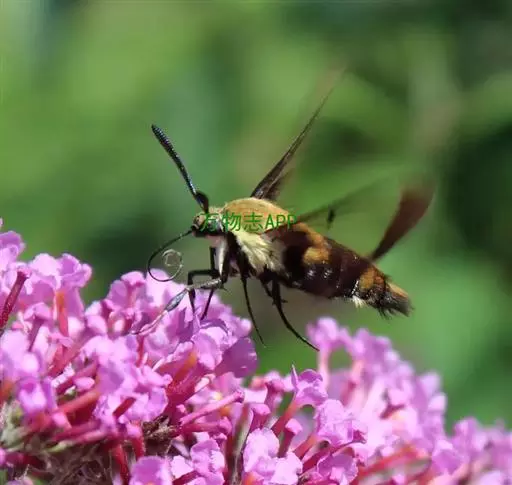 2016年6月11日,北京圆明园公园,发现一只蜂鸟鹰蛾在采食花粉或花蜜,并用长焦相机拍摄下来,经比对确认为蜂鹰鸟蛾。