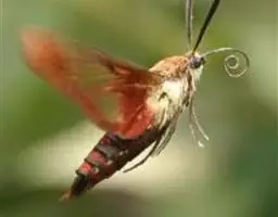 蜂鸟鹰蛾被称为昆虫世界里的“四不象”。因为,蜂鸟蛾首先像蝶,长长的喙管,尖端膨大的触角。翅面暗灰褐色,前翅有黑色纵纹,后翅橙黄色。它是蛾类,为蝶类的同族“近亲”。虫体翅展50毫米左右。和蝶不同的是,它腹部粗壮,这种昆虫除了比蜂鸟多出一对触须和翅膀上没有羽毛以外,无论体重、外形还是生活习性、飞行速度都与蜂鸟极其相似,故而被生物学家命名为蜂鸟蛾。